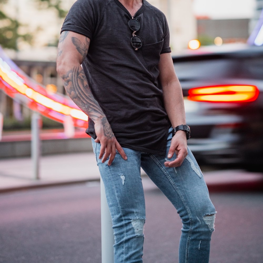 Be the first to review “Men’s Distressed Blue Slim-Fit Jeans” Cancel reply